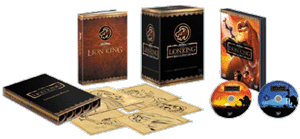 This $100+ boxed presentation is still occasionally seen in video stores; if you have a CAV-capable laserdisc player, this is still one of the best ways to view The Lion King at home, as laserdiscs can outdo even DVDs in picture quality. The box contains the movie in letterbox format (1.66:1 aspect ratio), spanning two CAV discs, and two more discs containing the "Making of The Lion King" half-hour show, storyboards, character design artwork, concept art, and rough animation. The movie contains commentary by the directors on the first analog audio track. If that weren't enough, there is an envelope in the box containing six lithographed pieces of concept artwork from the film. There is enough material in this package to make viewing The Lion King an all-day affair. If you find this handsome boxed set for sale anywhere, you won't regret picking it up.