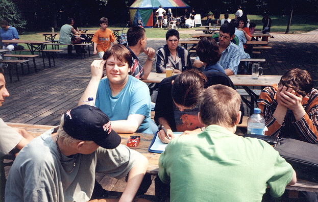 Kublia (me, blue T-shirt) And... Unicorn at work again. This is the Kublia drawing in the making... =)