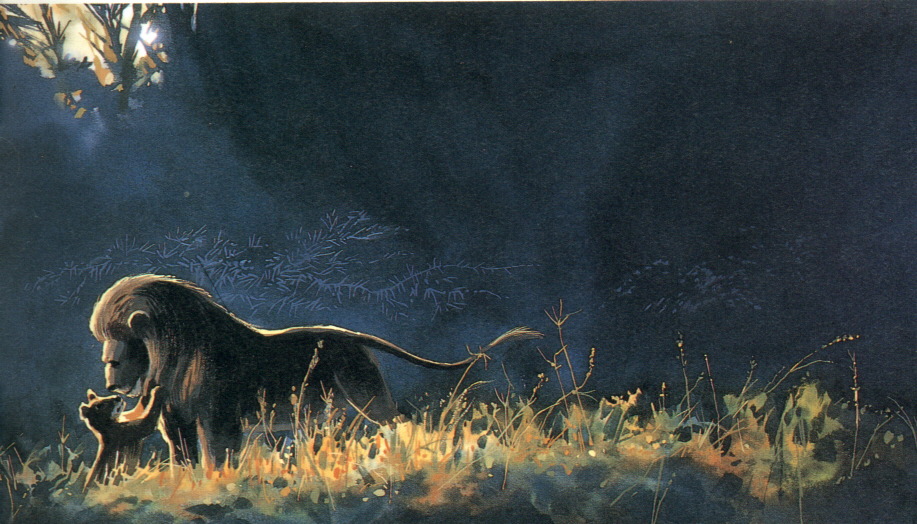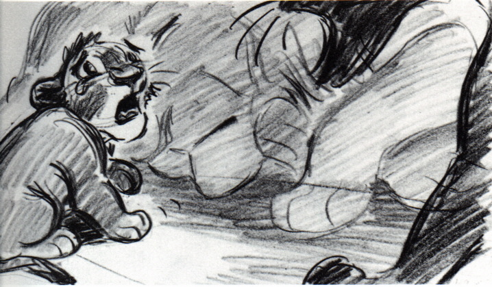 Simba crying, Scar watching him. |