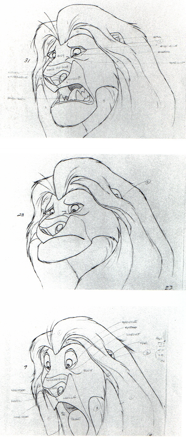 Mufasa animation drawing, with remarks about what parts